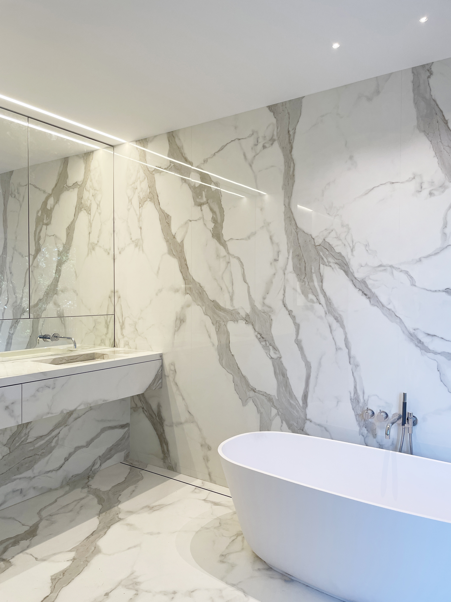 Ein grünes Hanggrundstück am Waldrand mit einem Haus aus der Nachkriegszeit. 60 Jahre später soll es für eine junge Familie umgebaut werden. Der Wunsch nach zeitgemäßem Wohnen lässt sich bereits an der Fassade ablesen. Während die äußeren Abmessungen weitgehend beibehalten wurden, ersetzten wir das vorhandene flach geneigte Satteldach durch ein Walmdach, das, ebenso wie die Erdgeschossfassade, in Anlehnung an die benachbarten Schieferdächer mit schwarzen Alucobondplatten bekleidet wird. Die nur talseitig sichtbaren beiden Untergeschosse erhalten eine dunkle Putzfassade mit Holz-Aluminiumfenstern mit schwarzer Aludeckschale.