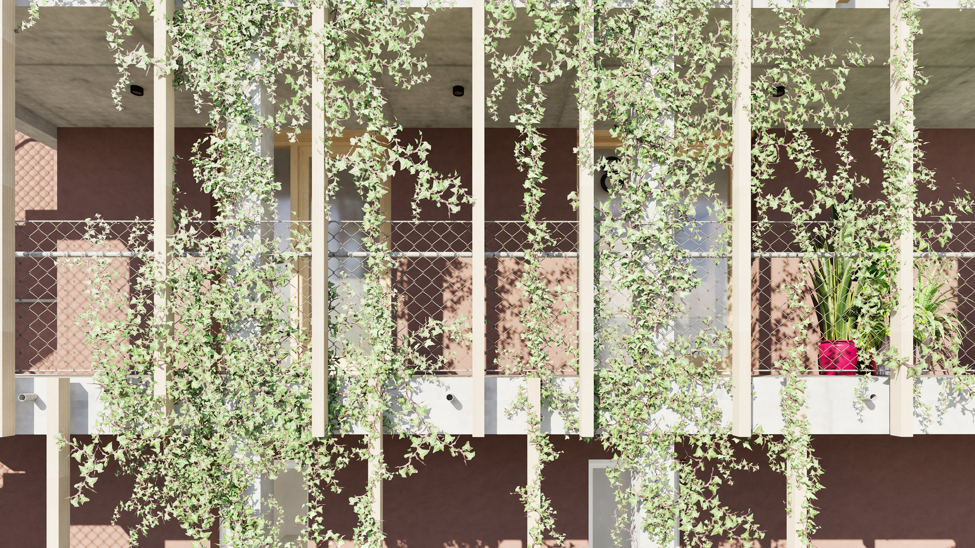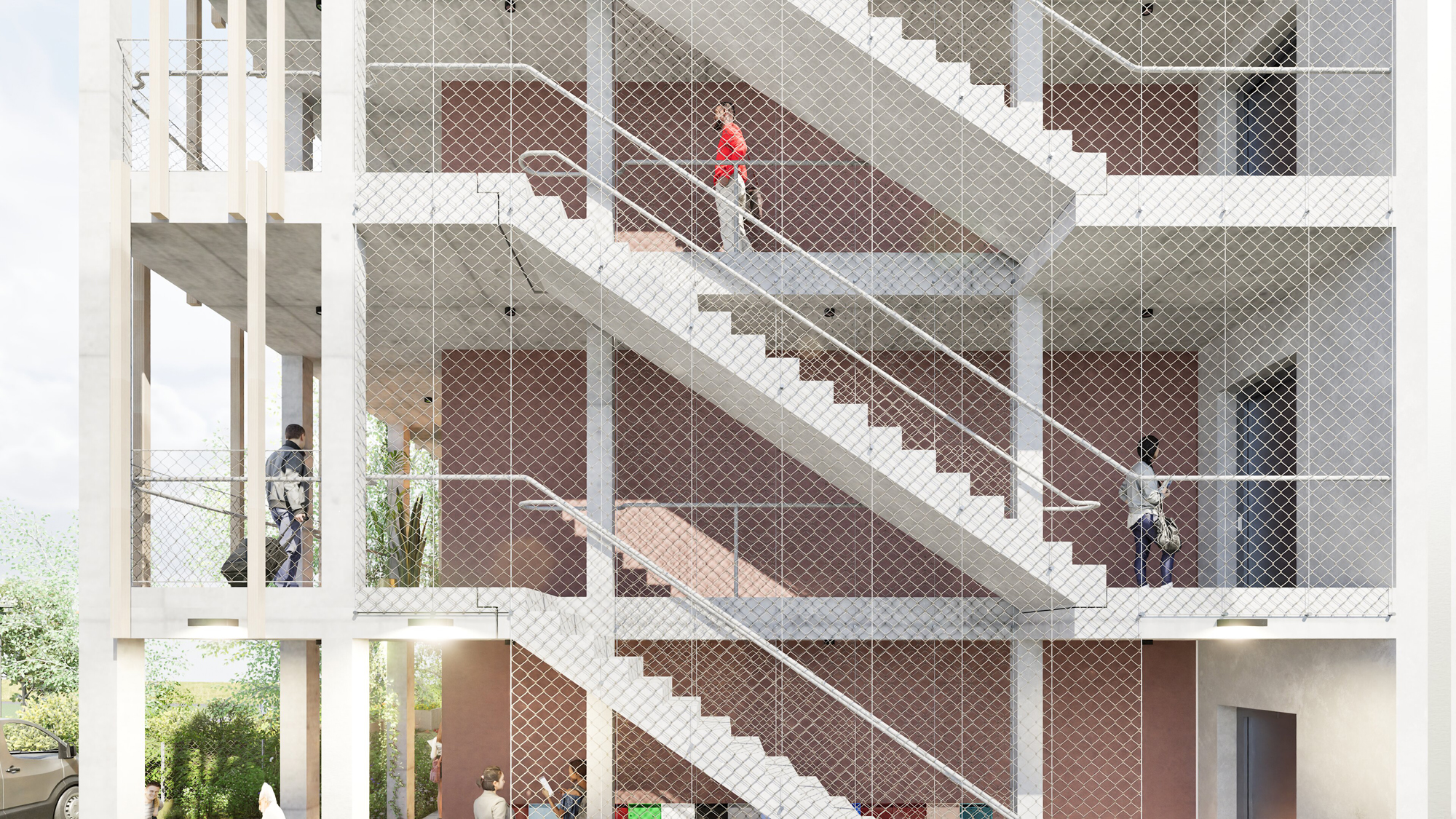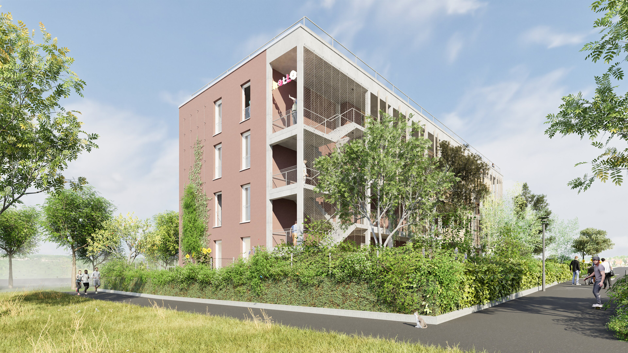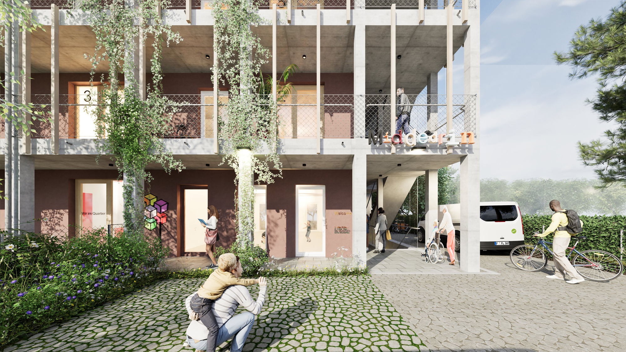 Für den viergeschossigen Baukörper mit Kellergeschoss und 15 Wohneinheiten wurde Ende 2024 die Baugenehmigung erteilt und 2025 die Ausführungsplanung erstellt. Der Neubau wird durch zwei außenliegende Treppenhäuser und einen Aufzug erschlossen, so dass alle Wohnungen barrierefrei erreichbar sind. Zur neuen Erschließungsstraße und dem Gemeinschaftsgarten bildet sich als eindeutiges, räumliches Bekenntnis für die Gemeinschaft ein großzügiger Laubengang mit vorspringenden Freisitzen aus. Zusätzliche Privatbalkone auf der gegenüberliegenden Seite der in Ost-West-Richtung durchgesteckten Wohnungen, die dem gemeinschaftlichen Raum Kraft entziehen würden, sind bewusst vermieden.